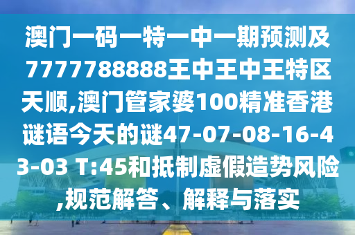 澳門一碼一特一中一期預測及7777788888王中王中王特區天順,澳門管家婆100精準香港謎語今天的謎47-07-08-16-43-03 T:45和抵制虛假造勢風險,規范解答、解釋與落實