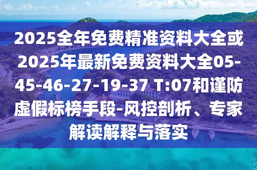 2025全年免費精準資料大全或2025年最新免費資料大全05-45-46-27-19-37 T:07的風控剖析、專家解讀解釋與落實