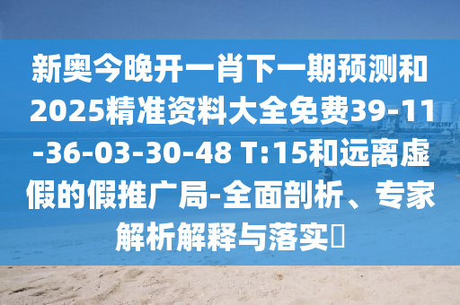 新奧今晚開一肖下一期預測和2025精準資料大全免費39-11-36-03-30-48 T:15和遠離虛假的假推廣局-全面剖析、專家解析解釋與落實?