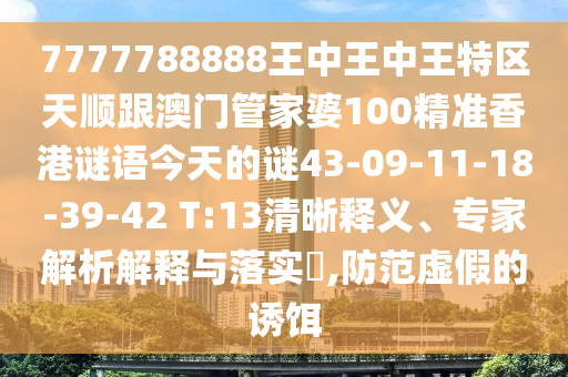 7777788888王中王中王特區天順跟澳門管家婆100精準香港謎語今天的謎43-09-11-18-39-42 T:13清晰釋義、專家解析解釋與落實?,防范虛假的誘餌