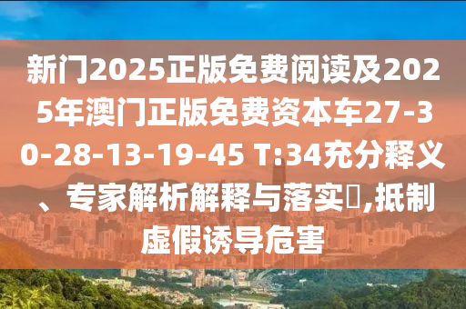 新門2025正版免費閱讀及2025年澳門正版免費資本車27-30-28-13-19-45 T:34充分釋義、專家解析解釋與落實?,抵制虛假誘導危害