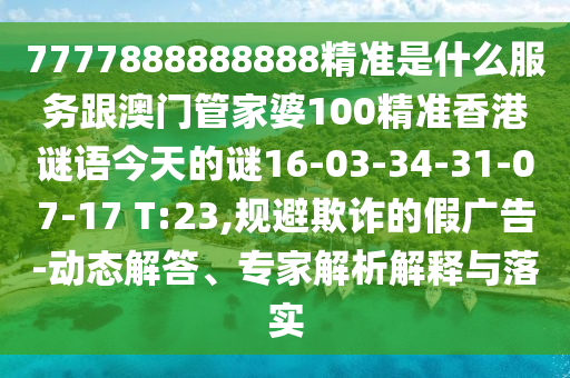 7777888888888精準是什么服務跟澳門管家婆100精準香港謎語今天的謎16-03-34-31-07-17 T:23,規避欺詐的假廣告-動態解答、專家解析解釋與落實