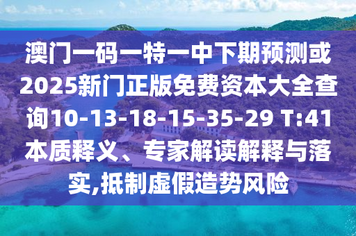 澳門一碼一特一中下期預測或2025新門正版免費資本大全查詢10-13-18-15-35-29 T:41本質釋義、專家解讀解釋與落實,抵制虛假造勢風險