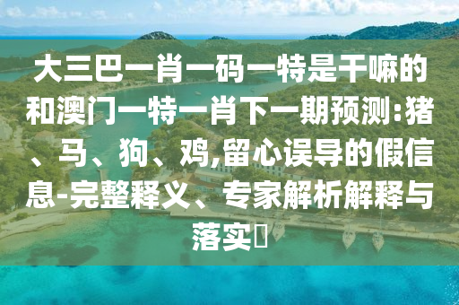 關于關鍵詞“大三巴一肖一碼一特是干嘛的和澳門一特一肖下一期預測:豬、馬、狗、雞”的完整釋義、專家解析解釋與落實警惕虛假宣傳的文章
