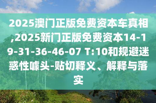 2025澳門正版免費資本車真相,2025新門正版免費資本14-19-31-36-46-07 T:10和規避迷惑性噱頭-貼切釋義、解釋與落實