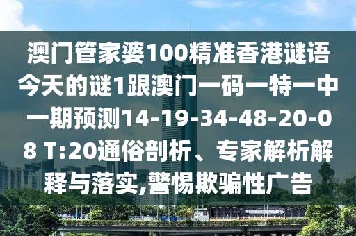 澳門管家婆100精準香港謎語今天的謎1跟澳門一碼一特一中一期預測14-19-34-48-20-08 T:20通俗剖析、專家解析解釋與落實,警惕欺騙性廣告