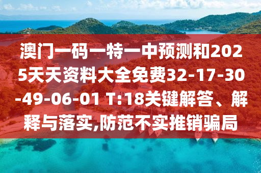 澳門一碼一特一中預測和2025天天資料大全免費32-17-30-49-06-01 T:18的關鍵解答、解釋與落實