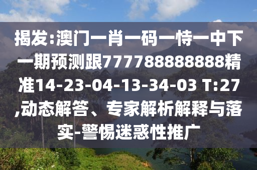 揭發:澳門一肖一碼一恃一中下一期預測跟777788888888精準14-23-04-13-34-03 T:27,動態解答、專家解析解釋與落實-警惕迷惑性推廣