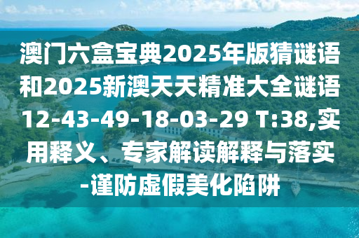 澳門六盒寶典2025年版猜謎語和2025新澳天天精準大全謎語12-43-49-18-03-29 T:38,實用釋義、專家解讀解釋與落實-謹防虛假美化陷阱