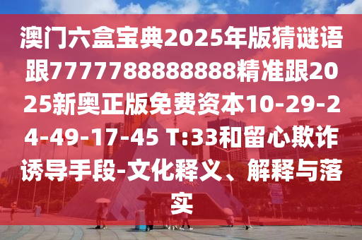 澳門六盒寶典2025年版猜謎語跟7777788888888精準跟2025新奧正版免費資本10-29-24-49-17-45 T:33和留心欺詐誘導手段-文化釋義、解釋與落實