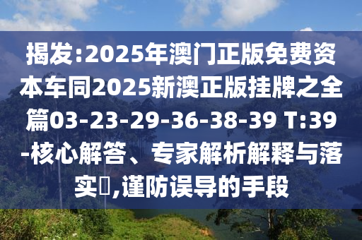 揭發:2025年澳門正版免費資本車同2025新澳正版掛牌之全篇03-23-29-36-38-39 T:39-核心解答、專家解析解釋與落實?,謹防誤導的手段