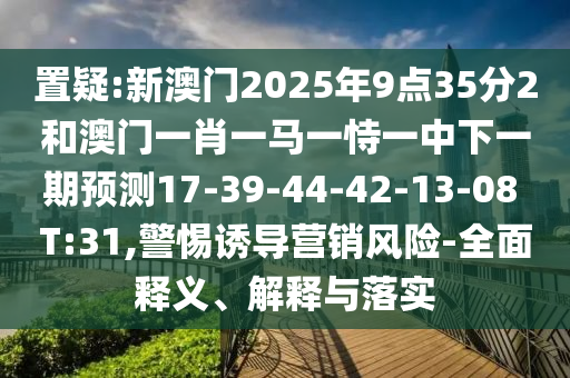 置疑:新澳門2025年9點35分2和澳門一肖一馬一恃一中下一期預測17-39-44-42-13-08 T:31,警惕誘導營銷風險-全面釋義、解釋與落實