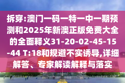 拆穿:澳門一碼一特一中一期預測和2025年新澳正版免費大全的全面釋義31-20-02-45-15-44 T:18和規避不實誘導,詳細解答、專家解讀解釋與落實