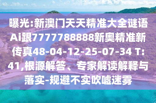 曝光:新澳門天天精準大全謎語Ai跟7777788888新奧精準新傳真48-04-12-25-07-34 T:41,根源解答、專家解讀解釋與落實-規避不實吹噓迷霧
