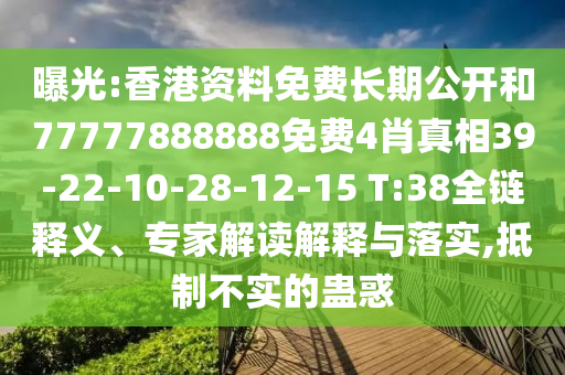香港資料免費長期公開和77777888888免費4肖真相39-22-10-28-12-15 T:38的全鏈釋義、專家解讀解釋與落實