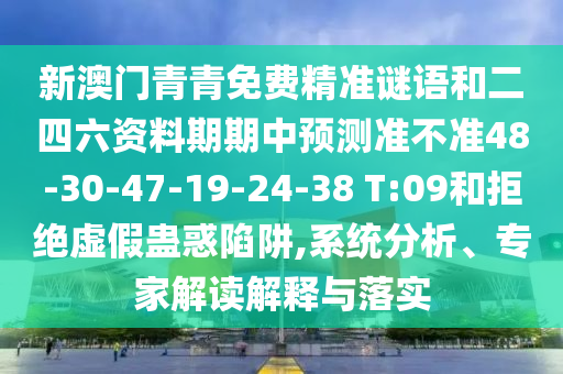 新澳門青青免費精準謎語和二四六資料期期中預測準不準48-30-47-19-24-38 T:09和拒絕虛假蠱惑陷阱,系統分析、專家解讀解釋與落實