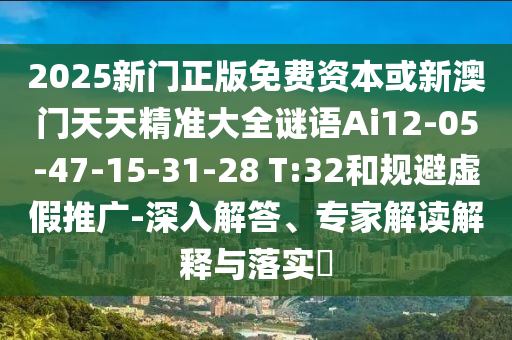 2025新門正版免費資本或新澳門天天精準大全謎語Ai12-05-47-15-31-28 T:32和規避虛假推廣-深入解答、專家解讀解釋與落實?