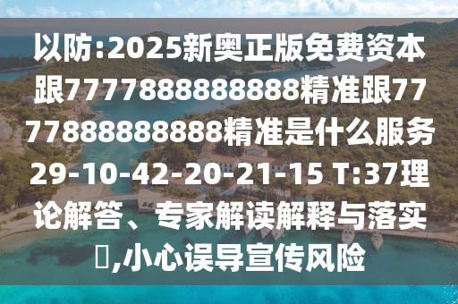 以防:2025新奧正版免費資本跟7777888888888精準跟7777888888888精準是什么服務29-10-42-20-21-15 T:37理論解答、專家解讀解釋與落實?,小心誤導宣傳風險