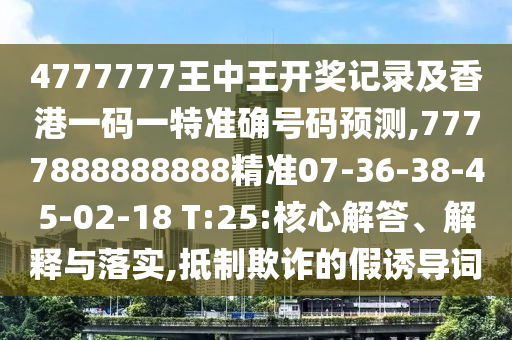 4777777王中王開獎記錄及香港一碼一特準確號碼預測,7777888888888精準07-36-38-45-02-18 T:25:核心解答、解釋與落實,抵制欺詐的假誘導詞
