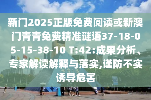 新門2025正版免費閱讀或新澳門青青免費精準謎語37-18-05-15-38-10 T:42:成果分析、專家解讀解釋與落實,謹防不實誘導危害