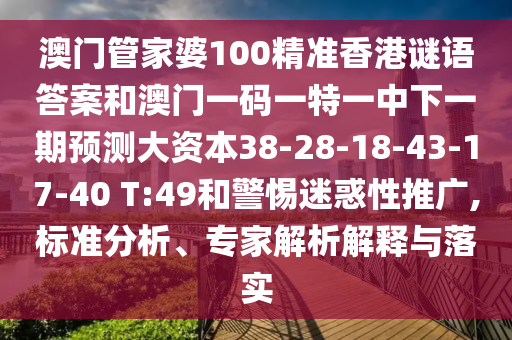 澳門管家婆100精準香港謎語答案和澳門一碼一特一中下一期預測大資本38-28-18-43-17-40 T:49和警惕迷惑性推廣,標準分析、專家解析解釋與落實
