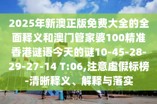2025年新澳正版免費大全的全面釋義和澳門管家婆100精準香港謎語今天的謎10-45-28-29-27-14 T:06,注意虛假標榜-清晰釋義、解釋與落實