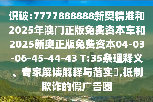 識破:7777888888新奧精準和2025年澳門正版免費資本車和2025新奧正版免費資本04-03-06-45-44-43 T:35條理釋義、專家解讀解釋與落實?,抵制欺詐的假廣告圈