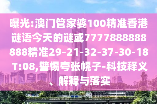 曝光:澳門管家婆100精準香港謎語今天的謎或7777888888888精準29-21-32-37-30-18 T:08,警惕夸張幌子-科技釋義、解釋與落實