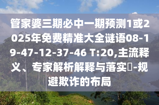 管家婆三期必中一期預測1或2025年免費精準大全謎語08-19-47-12-37-46 T:20,主流釋義、專家解析解釋與落實?-規避欺詐的布局