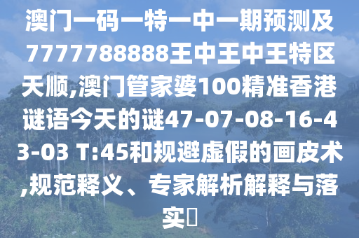 澳門一碼一特一中一期預測及7777788888王中王中王特區天順,澳門管家婆100精準香港謎語今天的謎47-07-08-16-43-03 T:45和規避虛假的畫皮術,規范釋義、專家解析解釋與落實?