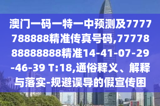 澳門一碼一特一中預測及7777788888精準傳真號碼,7777888888888精準14-41-07-29-46-39 T:18,通俗釋義、解釋與落實-規避誤導的假宣傳困