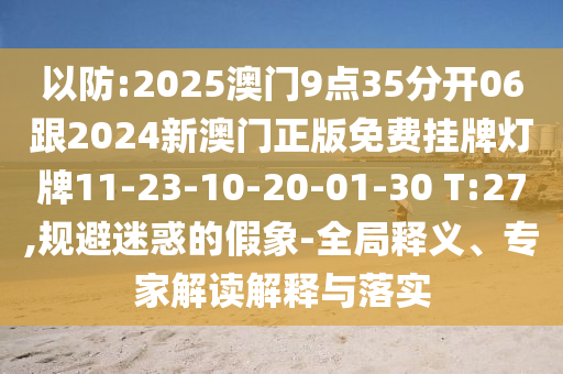 以防:2025澳門9點35分開06跟2024新澳門正版免費掛牌燈牌11-23-10-20-01-30 T:27,規避迷惑的假象-全局釋義、專家解讀解釋與落實