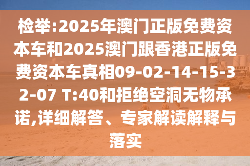2025年澳門正版免費資本車和2025澳門跟香港正版免費資本車真相09-02-14-15-32-07 T:40的詳細解答、專家解讀解釋與落實