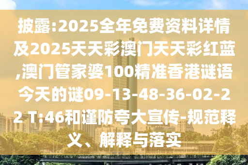 披露:2025全年免費資料詳情及2025天天彩澳門天天彩紅藍,澳門管家婆100精準香港謎語今天的謎09-13-48-36-02-22 T:46和謹防夸大宣傳-規范釋義、解釋與落實